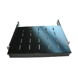 Etagère coulissante 1U, fixation avant et arrière, pouvant supporter une charge maximum de 25 Kg. Coloris Noir