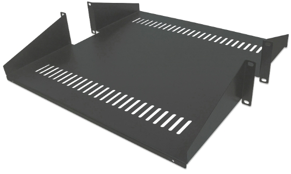 Etagere noir ou gris fixe, fixation avant, 19 pouces, 2U