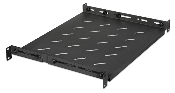 Peut supporter une charge maximum de 50 Kg et 100 Kg pour les profondeur 600 et 800 mm Coloris : Noir (RAL9005) ou Gris (RAL7035) Hauteur : 1U Largeur : 19 pouces (482.6 mm) Adaptée pour un usage en coffrets et en baies de brassage