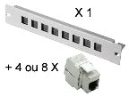 Plus : 4 embases RJ45 Catégorie 5E UTP 100 MHz 1 Gbit + 4 bouchons pour les emplacements Keystone non utilisés ou 8 embases RJ45 Catégorie 5E UTP 100 MHz 1 Gbit