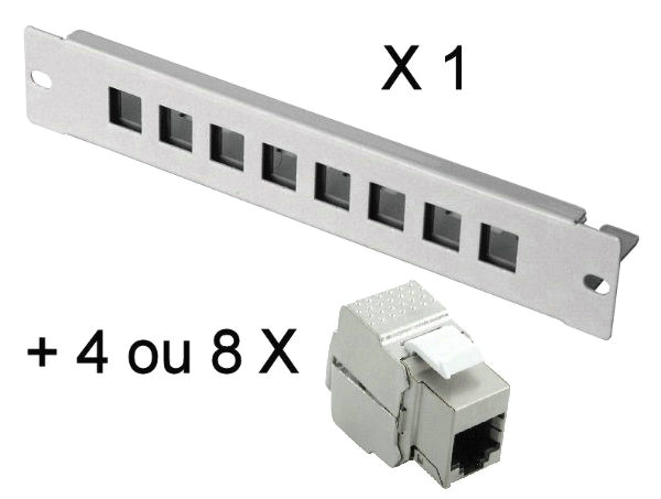 Panneau de brassage 10" avec Embases RJ45 Cat 5E FTP 4 RJ Cat 5E FTP