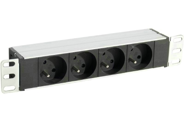 - >PDU 1U 4 PC françaises, sans interrupteur, sans voyant, avec câble 1,5 mm2 de 1,00 m doté d'une prise française, 16A/250V. Dimensions : 220 x 44 x 46,5 mm. Entrée : 1 Prise française 2P+T norme CEE 7/5 type E. Sortie : 4 Prises françaises 2P+T norme CEE 7/5 type E. Le montage dans la baie nécessite 4 vis non fournies.
