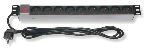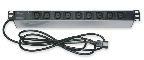 9 PC - >PDU 1U avec voyant lumineux présence tension, sans interrupteur, avec câble 1,5 mm2 de 2,30 m doté d'une prise française, 16A/250V. Dimensions : 482.6 x 44.4 x 44,4 mm. Entrée : 1 Prise française male 2P+T, norme CEE 7/5, type E Sortie : 9 Prises françaises 2P+T, norme CEE 7/5, type E