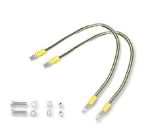 - >Kit de mise à la terre. Permet d'assurer la continuité de la mise à la terre entre la structure de la baie, ses panneaux latéraux ou/et les portes. 1 câble jaune/vert 2,52 de 300 mm et visserie. Il est recommandé d'utiliser 2 kits terre par baie.