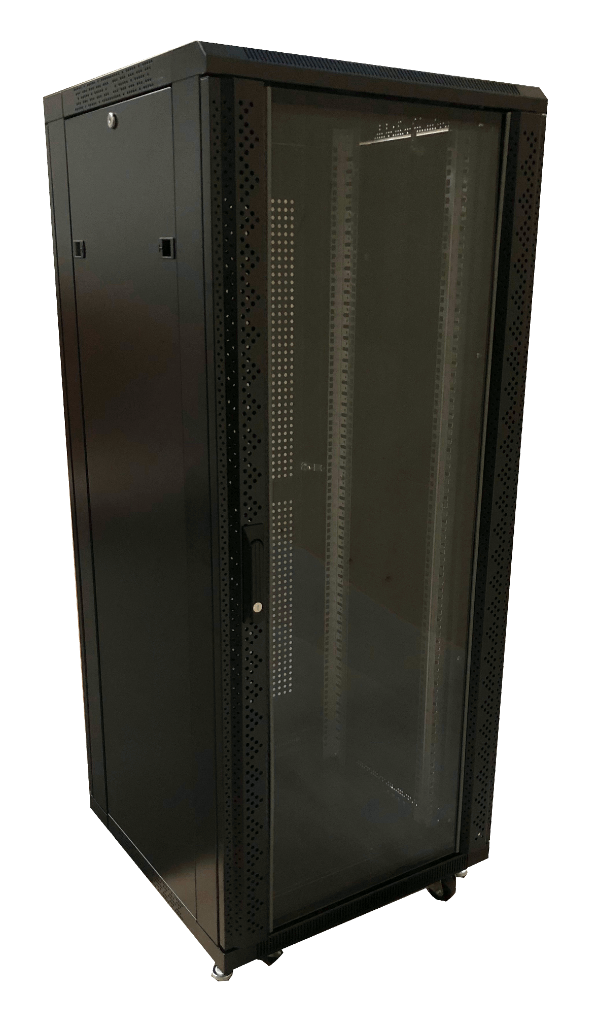 42U - 2070 mm - 800 x 800 mm - >Caractéristiques La prédécoupe pour le passage des câbles facilite l’installation et l’organisation de vos câblages, garantissant une gestion propre et efficace, idéale pour une baie de brassage optimisée. Sécurisez vos équipements grâce à une serrure robuste, livrée avec deux clés pour une tranquillité d'esprit maximale. Dotée d'une épaisseur de 5 mm, la porte en verre trempé offre une visibilité optimale sur vos équipements tout en garantissant une résistance accrue. Son ouverture à plus de 180 degrés permet un accès facile et rapide. Les clips de chaque côté permettent une ouverture rapide et sans effort, facilitant l'accès pour la maintenance et les modifications. Cette armoire rack est equipée de 4 montants 19 pouces zinc pour la mise à la terre et une sécurité électrique optimale. Sa conception robuste en acier, tôle de 1,0mm et profilés de 1,2mm, garantit la sécurité de vos équipements. La baie supporte jusqu'à 800 kg, offrant une capacité suffisante pour tous vos équipements. Lot de vis/écrous fournis