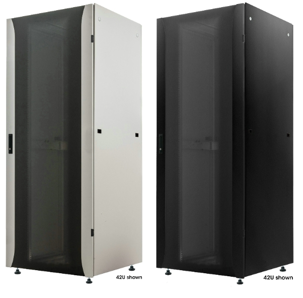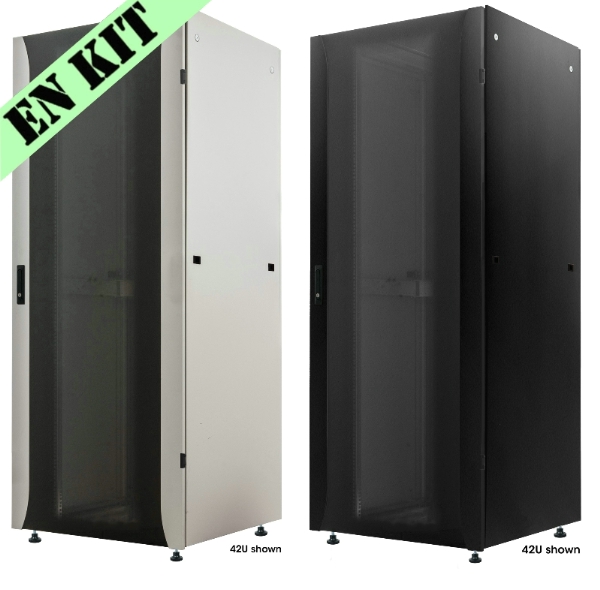 Noir - 42U - 600 x 800 mm - >Armoire informatique de brassage gris ou noir Gamme PREMIUM, 19", pré assemblée, 22U à 42U. Cette grande baie serveurs très robuste sera parfaite pour l'installation de votre structure réseaux ayant de lourds serveurs ou appareils de type onduleurs: elle peut supporter une charge maximum de 2 000 Kg, et dispose de plusieurs choix de hauteur allant jusqu'à 42U. Possibilité d'ajouter des ventilateurs en haut et en bas qui vont donc pouvoir aérer et refroidir vos appareils. Passage de câble en haut et en bas de cette baie pour faciliter l'installation de votre infrastructure réseau. La porte dispose d'une serrure pour protéger vos appareils. Cette baie est livrée déjà montée. Couleur : Noir ( RAL9005) ou Gris ( RAL7035) Livré avec : accessoires d'installation, 4 montants ajustables, 4 pieds ajustables Kit de vis M6 ou des étagères fixe pour coffret, disponible ici : kit de vis, étagère fixe 714297, 715720, 715737, 715744, 715751, 715768