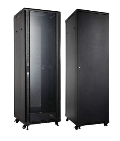 42U - 1985 mm - 600 x 800 mm, Porte AV vitrée, porte AR pleine - >Caractéristiques : Armoire informatique montée Porte avant: vitrée et ventilée, avec serrure Porte arrière: métal plein, avec serrure Panneaux lateraux amovibles avec verrouillage par clips et serrure Portes très facilement démontables (amovibles) Passage de cable bas et haut Baie de brassage de 800 mm de large équipée de goulottes latérales 4 montants 19 pouces (2 avants, 2 arrières) réglables en profondeur par pas de 25mm Vérins réglables fournis, kit roulettes en option (Réf. E806A2037 Voir ci-dessous) Kits de visserie fournis : (un kit = 1 vis + 1 rondelle + 1 écrou cage) 22U, 24U et 27U: 20 kits fournis37U : 30 kits fournis 42U : 40 kits fournis Kit de mise à la terre à commander séparément Conditionnement : Baie montée sur palette, avec protections renforcée des angles et le tout filmé.