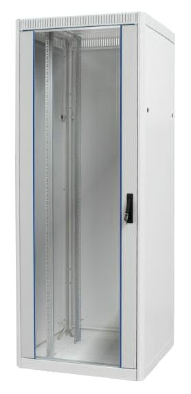 42 U - 1980 mm - 600 x 780 mm - Gris - >Caractéristiques : Construction robuste en tôle d'acier avec cadre soudé, livrée prête à assembler, coloris gris clair RAL 7035 • Assemblage rapide à l'aide de 16 vis M8 fournies • Porte avant en verre Securit, sens d'ouverture inversable, ouverture à 180°, serrure à poignée escamotable • Panneau arrière en tôle d'acier épaisseur 0.8 mm, amovible grâce a deux points de vérouillage • Faces latérales en tôle d'acier épaisseur 0.8 mm, amovibles grâce a deux points de vérouillage • Cette armoire rack informatique est équipée de 2 montants 19 pouces verticaux a l'avant, unités serigraphiées • 2 montants 19 pouces verticaux a l'arrière, unités serigraphiées • Espace maximum entre les montants avants et arrières variable selon la profondeur de la baie de brassage : Profondeur baie 600 - écart maxi 472 mm Profondeur baie 780 - écart maxi 652 mm • 4 pieds réglables fournis • Prédécoupes de 450x90 mm pour passage des câbles dans le toit et la base • Prédécoupes de 450x90 mm pour passage des câbles en bas et en haut du panneau arrière • Prédécoupes dans le toit pour équiper un toit de ventilation à 2, 4 ou 6 ventilateurs • Raccordements de terre repérés Indice de protection: IP20 selon PN 92/E-08106/EN 60529/CEI 529 (ne s'applique pas aux entrées de câbles à brosse) Conditionnement : Conditionnées demontées, sur palette jetable, avec cartons de protection