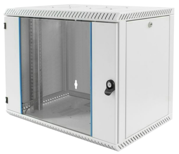 12U - 597 mm - > Entièrement préassemblé par soudure, auto ventilé, peinture au four Protection IP20 conformément à PN 92/E-08106 / EN 60 529 / IEC 529, pour une utilisation en intérieur 2 emplacements pour le montage de ventilateurs dans la plaque de base et la plaque de toit Pré découpe de 250 x 70 mm pour une pénétration des câbles dans la plaque de base et la plaque de toit ainsi que dans les parties basses et hautes de la face arrière. Porte avant amovible en verre Securit, angle d'ouverture de 180 degrés, sens d'ouverture à gauche ou à droite au choix, fermeture par serrure à clé. Panneaux latéraux amovibles avec fermeture à clef Rails verticaux profilés réglables en profondeur par pas de 25 mm, distance minimale entre la porte et les montants avants : 31,5 mm Espace maximal entre les montants profilés avant et la face arrière : 435 mm Coffret livré avec : 2 montants verticaux avants, 2 clefs, un passe cable, 16 ensembles écrous-cage + vis Coloris : gris clair