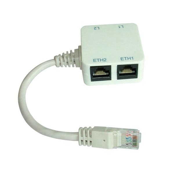 - >L’adaptateur RJ45 4 en 1 offre une alternative aux dédoubleurs et permet 2 utilisations possibles. La première étant d’utiliser simultanément sur une même prise réseau rj45 : * Le téléphone analogique (L1) * Le téléphone IP (09xx) (L2) * Un périphérique utilisant internet (PC, imprimante, TV...) (ETH1) Ou d'obtenir deux accès internet par la même prise comme le ferais une paire de dédoubleurs (ETH1 et ETH2) Longueur du câble : 165mm Dimensions (LxlxH) : 45 x 45 x 22 mm Débit Ethernet : 100 Mbit/s