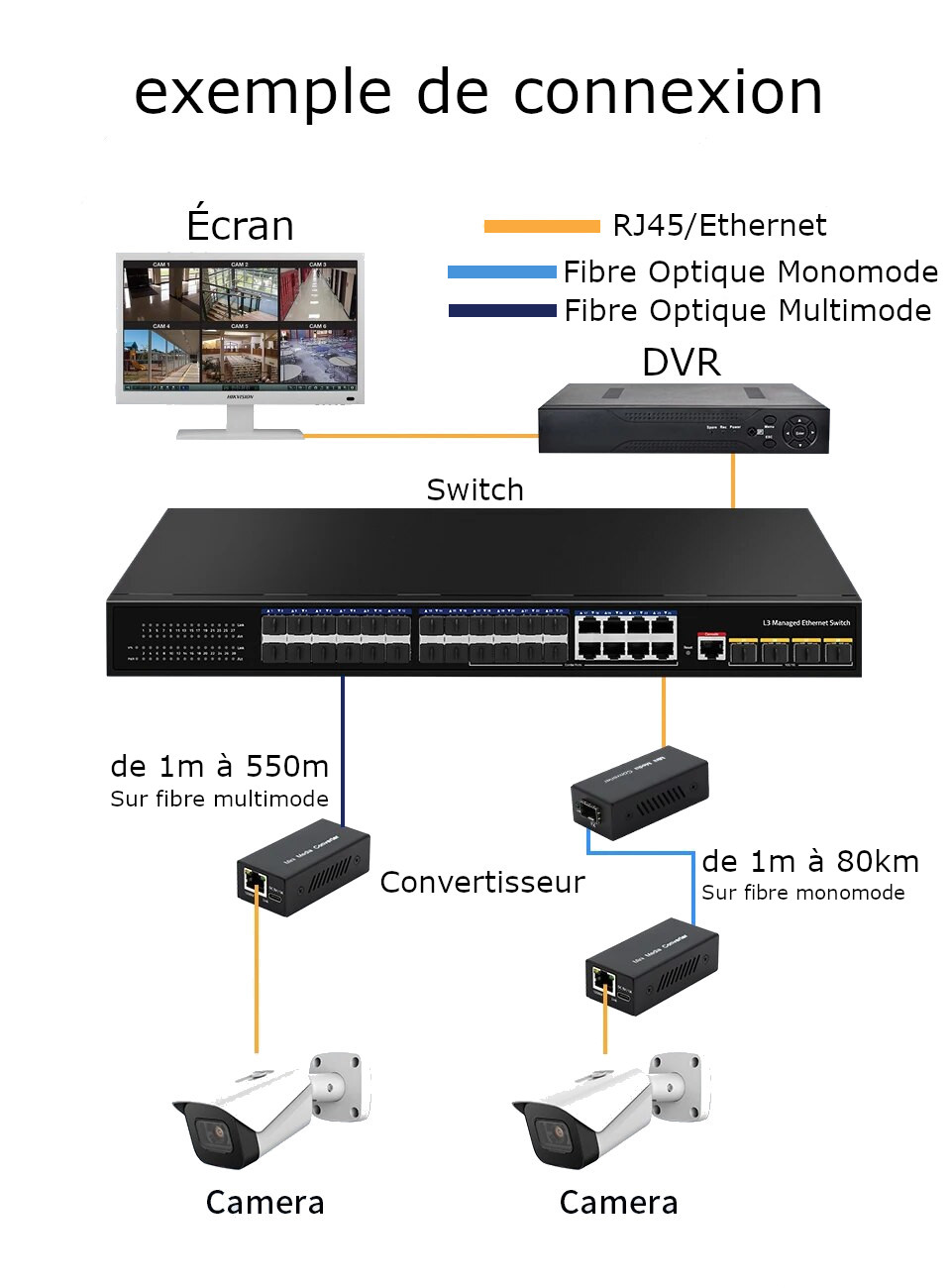Convertisseurs de média et modules optiques SFP à commander séparément