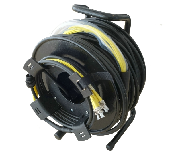 50 - 12 - ST - >Touret de fibres optiques métallique pour une grande resistance même en millieu contraignant (milieu militaire, par exemple). Tout à fait adapté à une utilisation dans le monde du spectacle et plus largement, dans l'évènementiel. Caractéristiques générales: - Fibres optiques à structure sérée - Fibres optiques de type OM4 - Possède un enrouleur auxiliaire permettant d'ajuster plus aisement la longueur de fibre déroulée. - Possède un frein pour vérouiller le déroulement de la fibre et ainsi la protéger. - Déploiement jusqu'à 500 mètres. Délai moyen de production : 15 jours ouvrés (Consultez nous pour les stocks et délais).