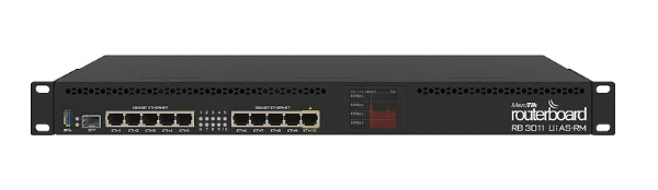 - > Le RB3011 (RB3011UiAS-RM) est un nouveau périphérique multi-ports, notre premier à exécuter une architecture CPU ARM pour des performances plus élevées que jamais. Le RB3011 possède 10 ports Gigabit divisés en deux groupes de commutateurs, une cage SFP et pour la première fois un port USB 3.0 SuperSpeed pleine taille, pour ajouter du stockage ou un modem 3G / 4G externe.L'unité RB3011UiAS-RM est livrée avec un boîtier de montage en rack 1U, un panneau LCD tactile, un port de console série et une fonctionnalité de sortie PoE sur le dernier port Ethernet.